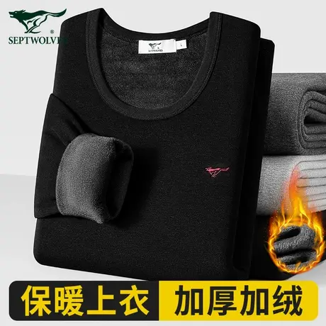 七匹狼保暖上衣男加绒加厚防寒冬季单件秋衣打底保暖内衣男款上身
