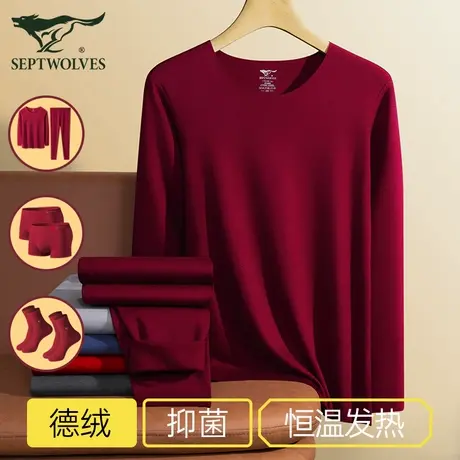 七匹狼本命年内衣套装男士酒红色内衣裤德绒发热保暖秋衣秋裤男款
